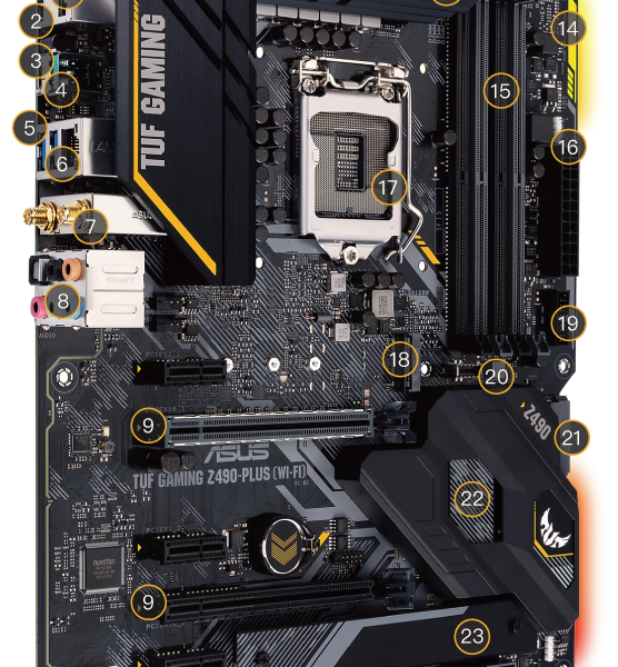 • Made for online gaming: Intel® WiFi 6, Intel® Ethernet Connection I219-V, TUF LANGuard and TurboLAN technology