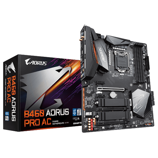 Intel® B460 AORUS Motherboard with Direct 8+2 Phase Digital VRM Design, Advanced Thermal Design with Enlarged Heatsink ,Dual Ultra-Fast NVMe PCIe 3.0 x4 M.2 with Thermal Guards, Intel® 802.11ac Wave2 2T2R WIFI & BT 5, Intel® 2.5 GbE LAN, USB 3.2 Gen2 Type-C™, RGB FUSION 2.0