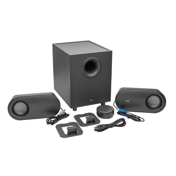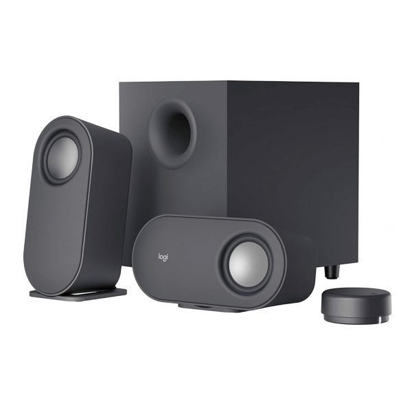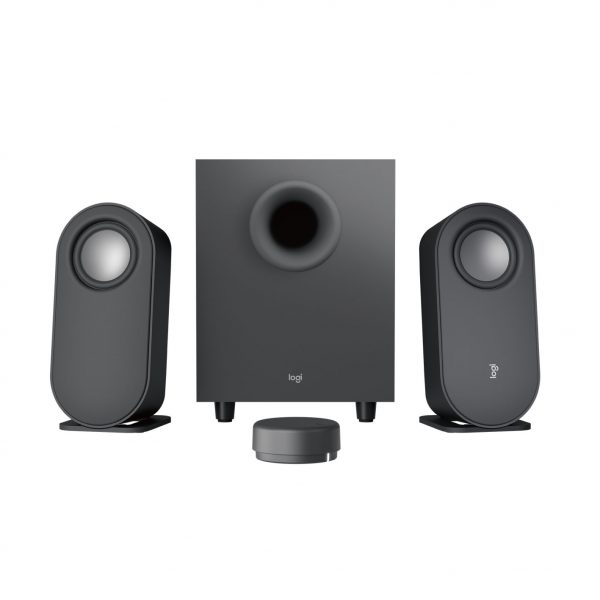 Say goodbye to “boxy.” These oval-shaped speakers are ready to stun in sleek graphite gray, blending into your desktop environment without getting in the way. Lay them upright or horizontally to get the look you want. They’re so compact, you can even sneak them under your monitor to save space. Use them to curate your space.